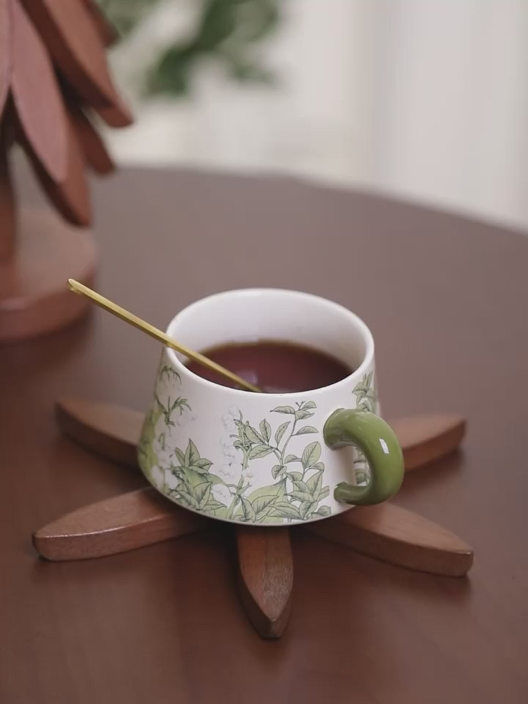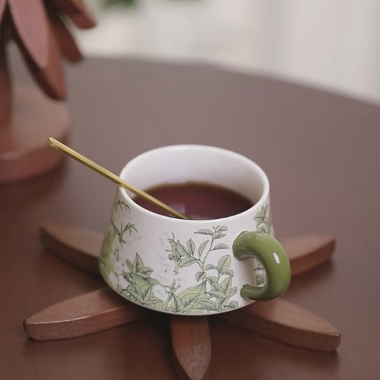 Each coaster features six precision-cut wooden segments. Simply place the bracket on any surface and lift the coaster—gravity automatically unfolds the wooden petals, creating a full heat-resistant base.